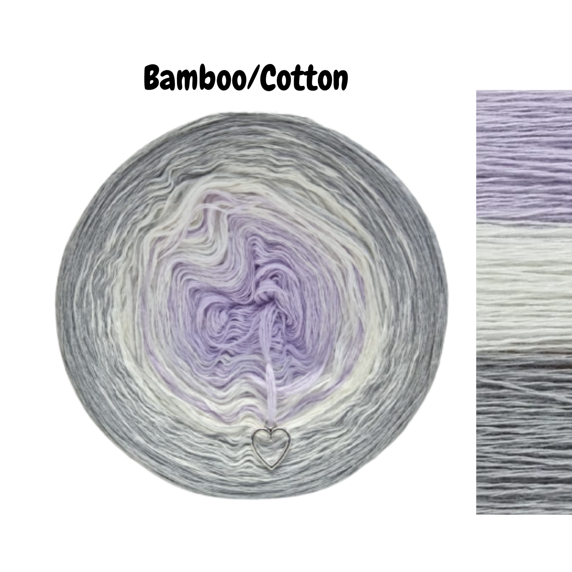 Introducing the gorgeous new, limited edition Cotton/Bamboo blend ombre yarn cakes. Bamboo is harvested from bamboo grass and spun into this beautiful yarn. This mix makes very soft and breathable bamboo and cotton blend yarn. Perfect for baby clothes, blankets and many other projects.