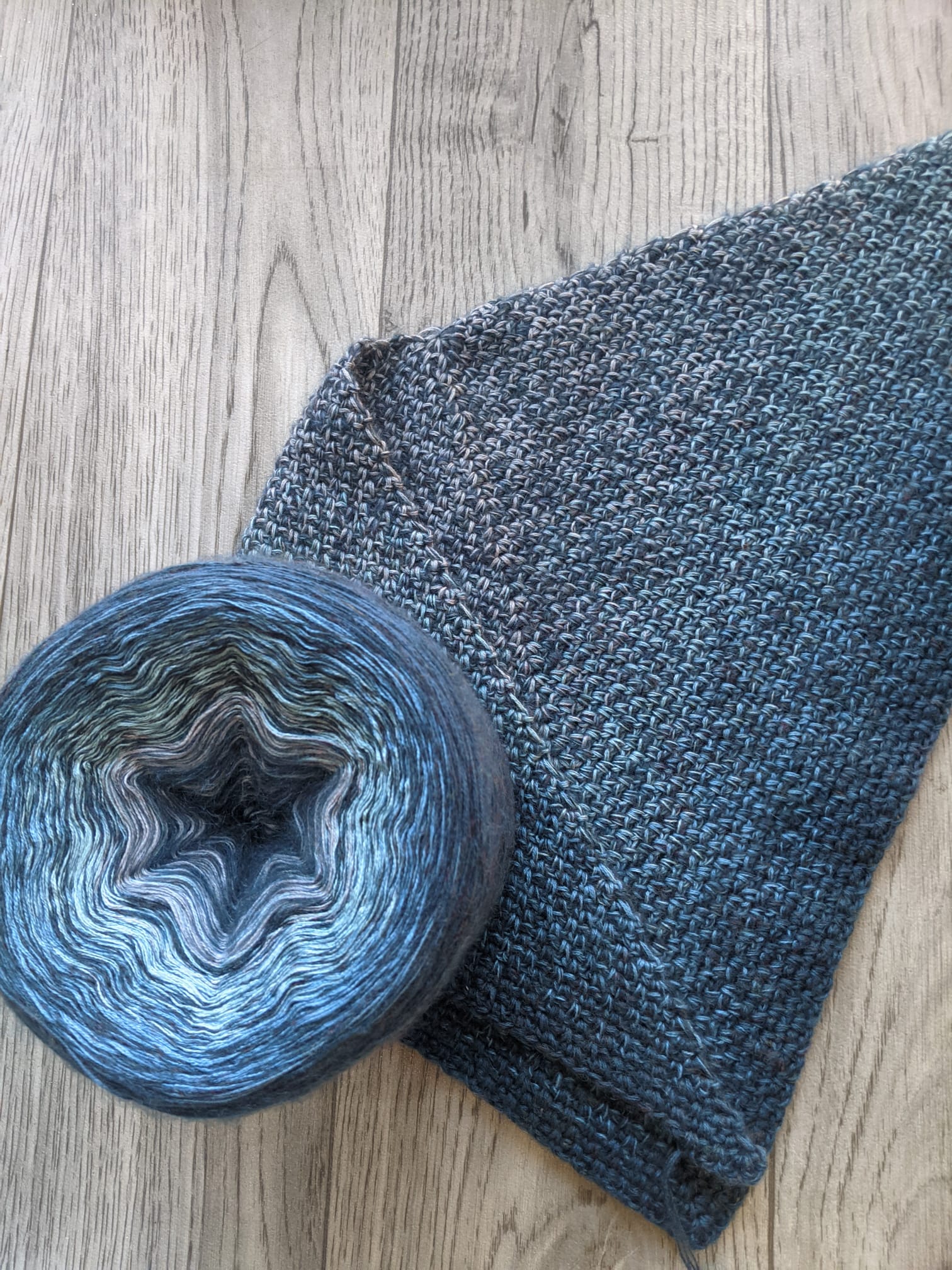 Three threads of cotton and acrylic mix - 4th being a soft and fluffy mohair thread. The addition of mohair thread will make your project softer and warmer, perfect for cold winter days.