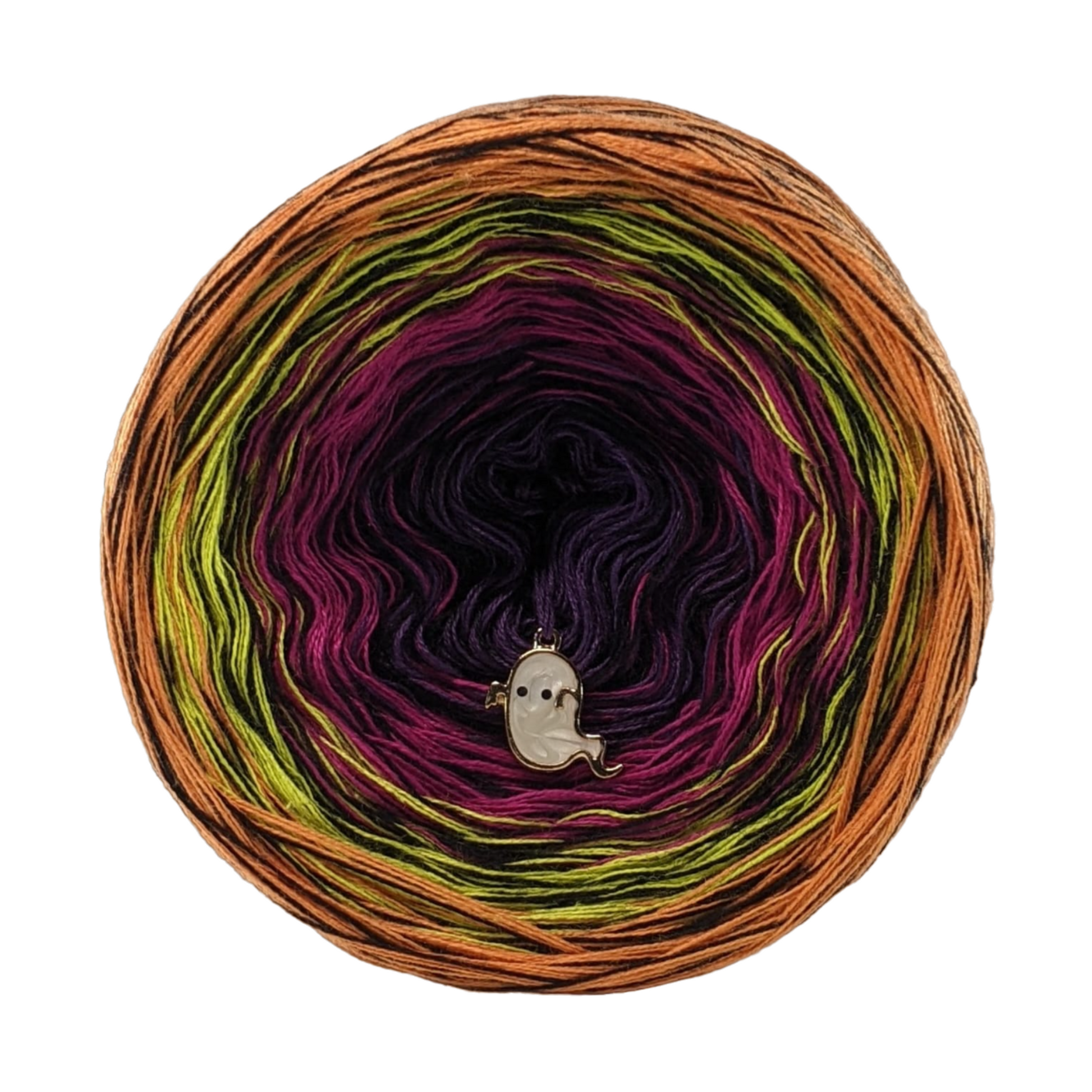 Ombre Yarn cake with a dark thread throughout the whole yarn cake. Making your final project darker.