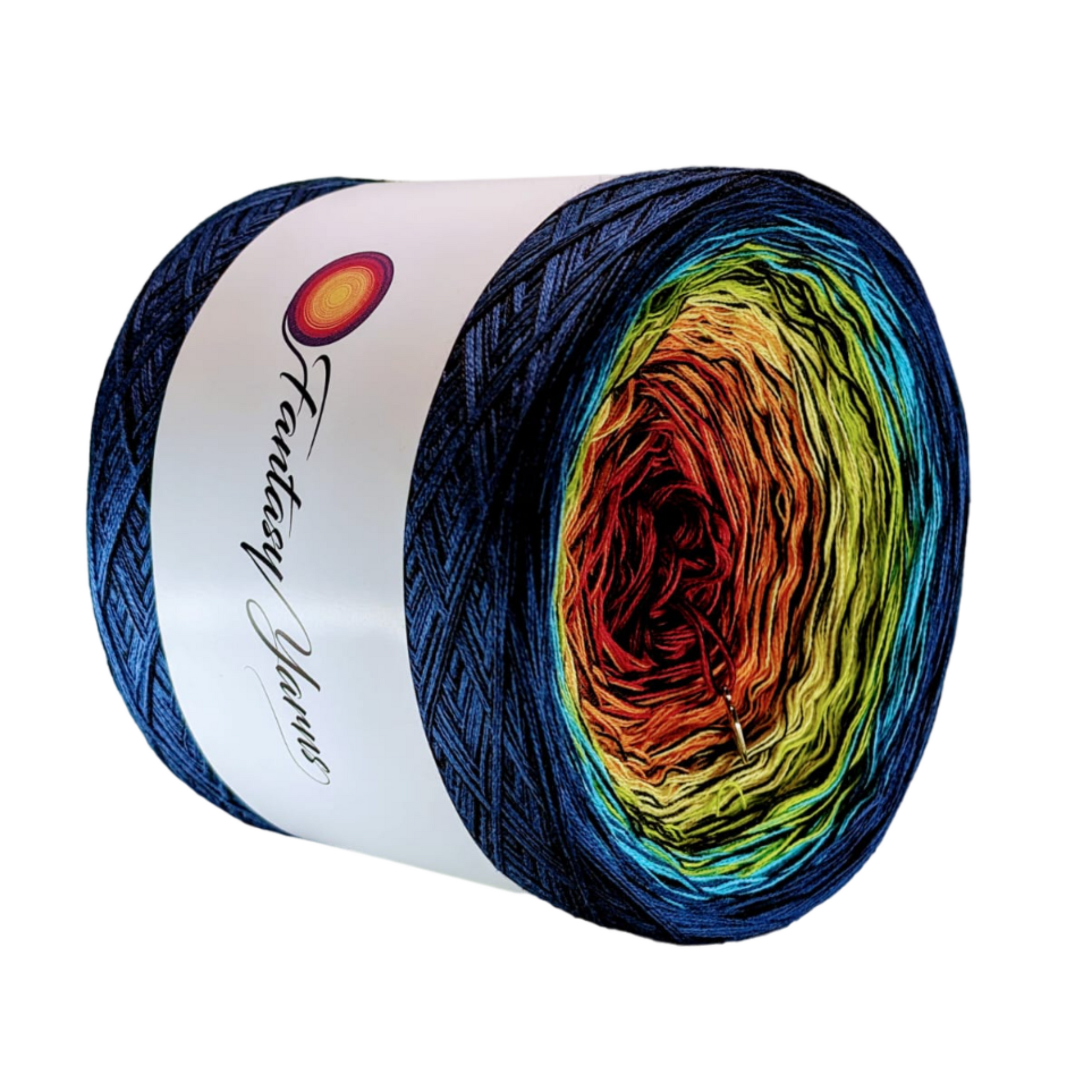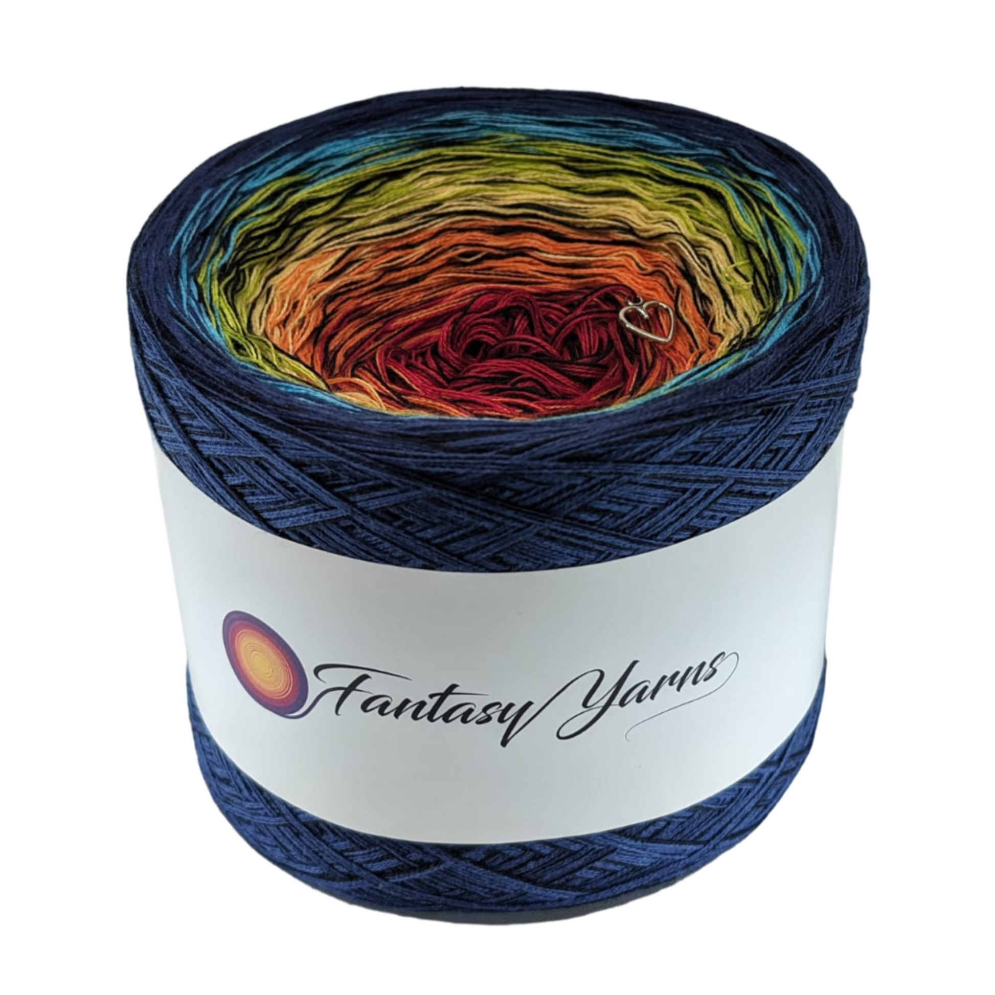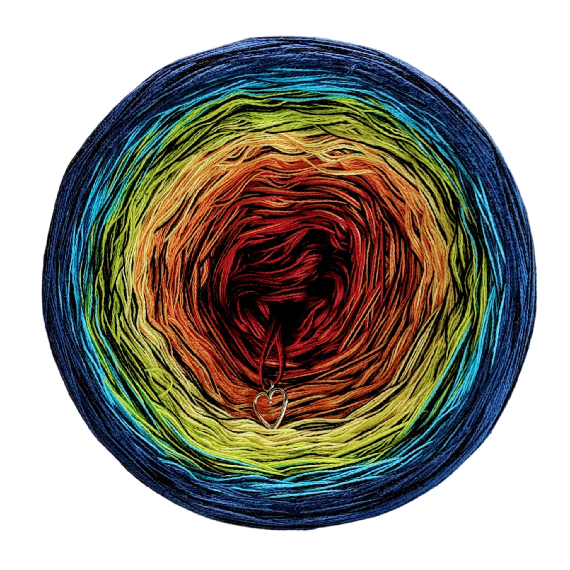 Ombre Yarn cake with a dark thread throughout the whole yarn cake. Making your final project darker.