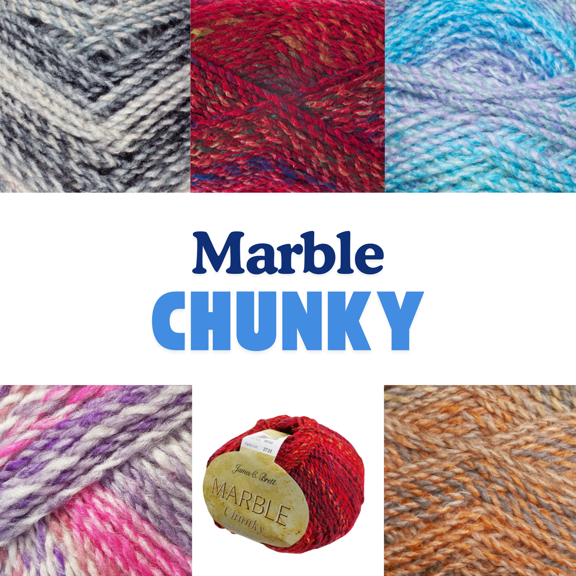 • Brand: James C. Brett - Known for producing premium-quality yarns, James C. Brett is a trusted favourite among knitters and crocheters. The Marble Chunky range stands out for its eye-catching marbled effect and versatility, making it perfect for a variety of creative projects.