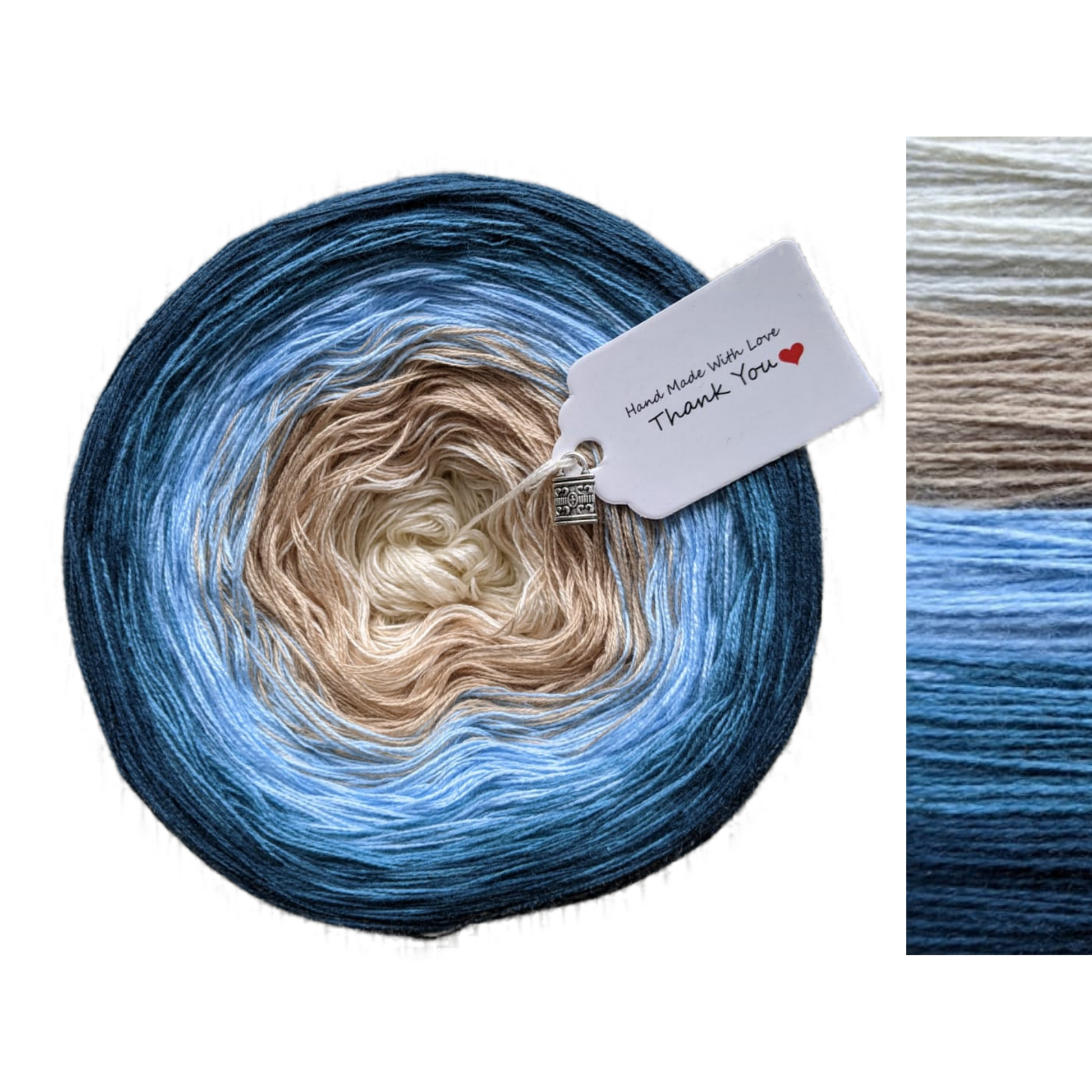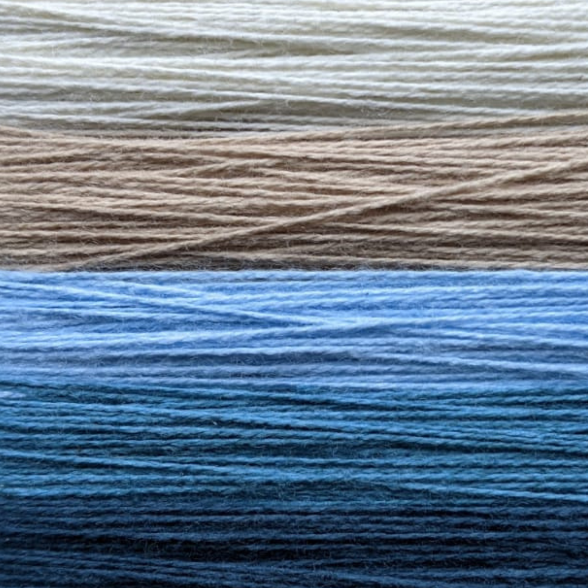 Three or four strands are held together while winding and are not spun together or twisted. Colours are changed at set rates and attached by a tiny knot, creating long slow changes of colour. Perfect for various projects, from scarves and blankets to ponchos and sweaters.