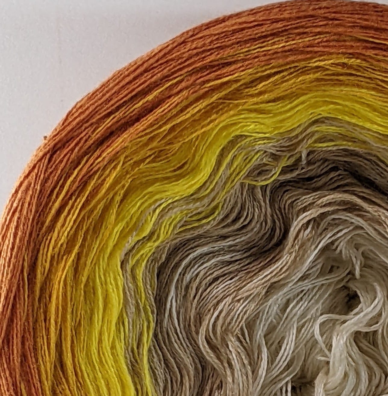 Three or four strands are held together while winding and are not spun together or twisted. Colours are changed at set rates and attached by a tiny knot, creating long slow changes of colour. Perfect for various projects, from scarves and blankets to ponchos and sweaters.