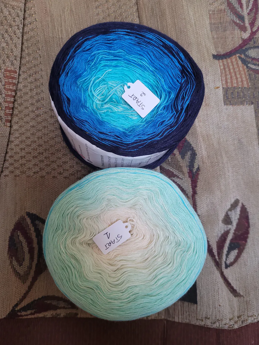 Due to current limitations, all yarn cakes over 300g will be divided into two. (they will be numbered and will specify which one to start with) please refer to a chart posted in the gallery.